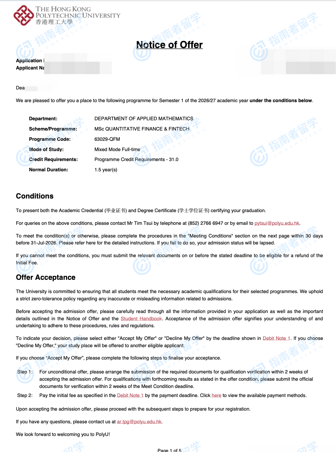 香港理工大學(xué)量化金融與金融科技理學(xué)碩士研究生offer一枚