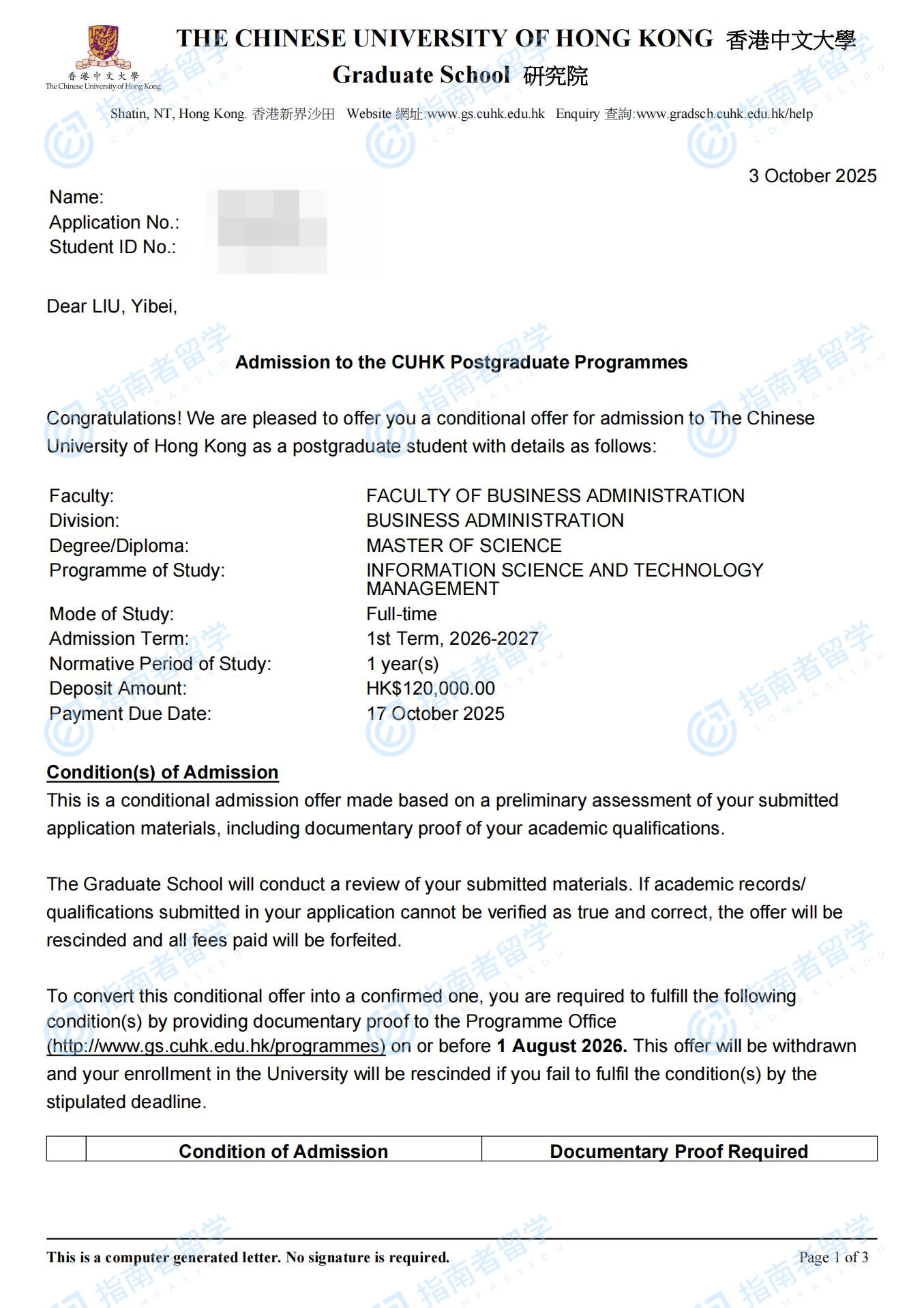 香港中文大學(xué)市場(chǎng)營(yíng)銷理學(xué)碩士研究生offer一枚