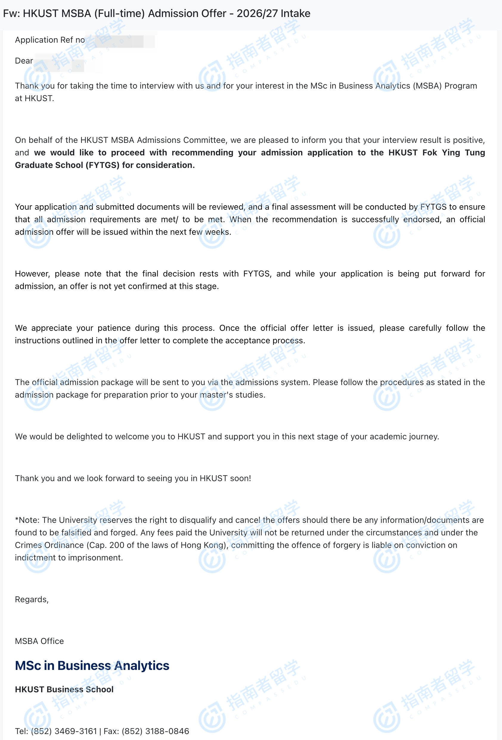 香港科技大學商業(yè)分析理學碩士研究生offer一枚