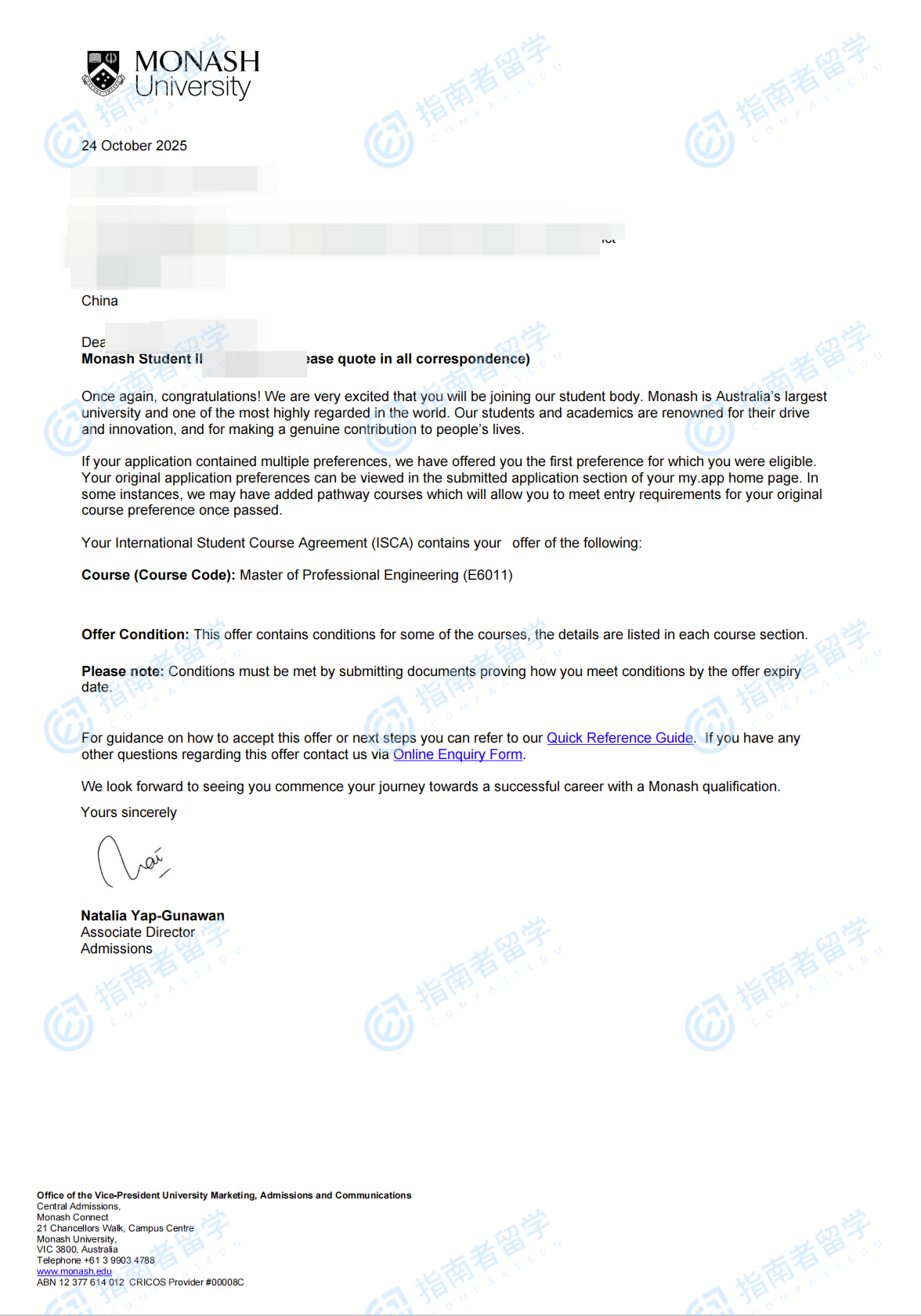 莫納什大學(xué)職業(yè)機械工程學(xué)碩士(2年制)研究生offer一枚