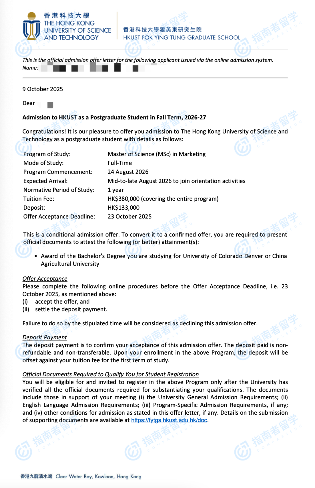 香港科技大學(xué)市場營銷理學(xué)碩士研究生offer一枚