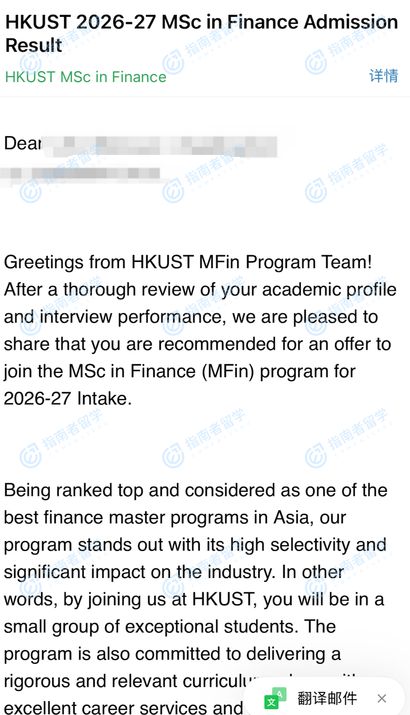 香港科技大學(xué)金融學(xué)理學(xué)碩士研究生offer一枚