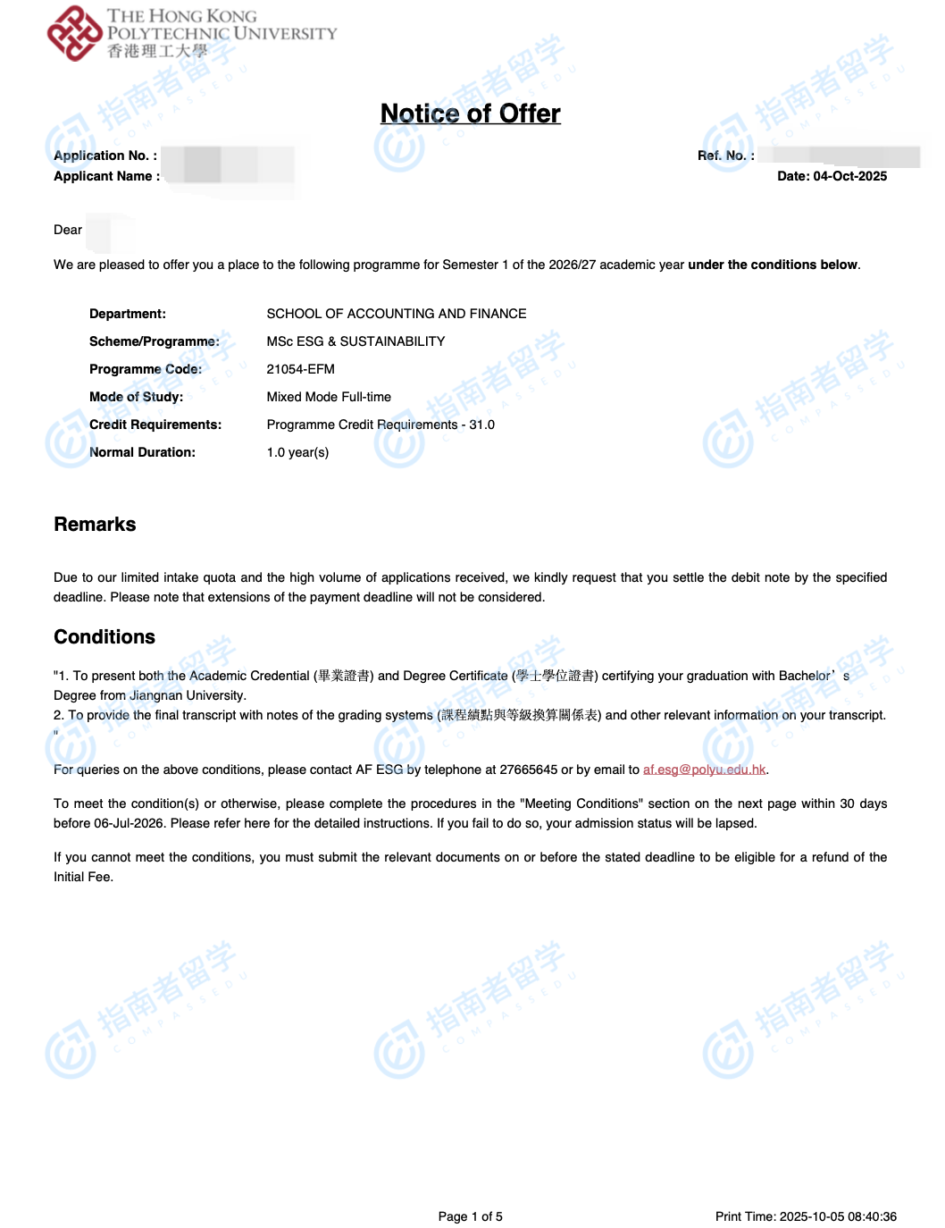 香港理工大學(xué)環(huán)境、社會(huì)和治理及可持續(xù)性理學(xué)碩士研究生offer一枚