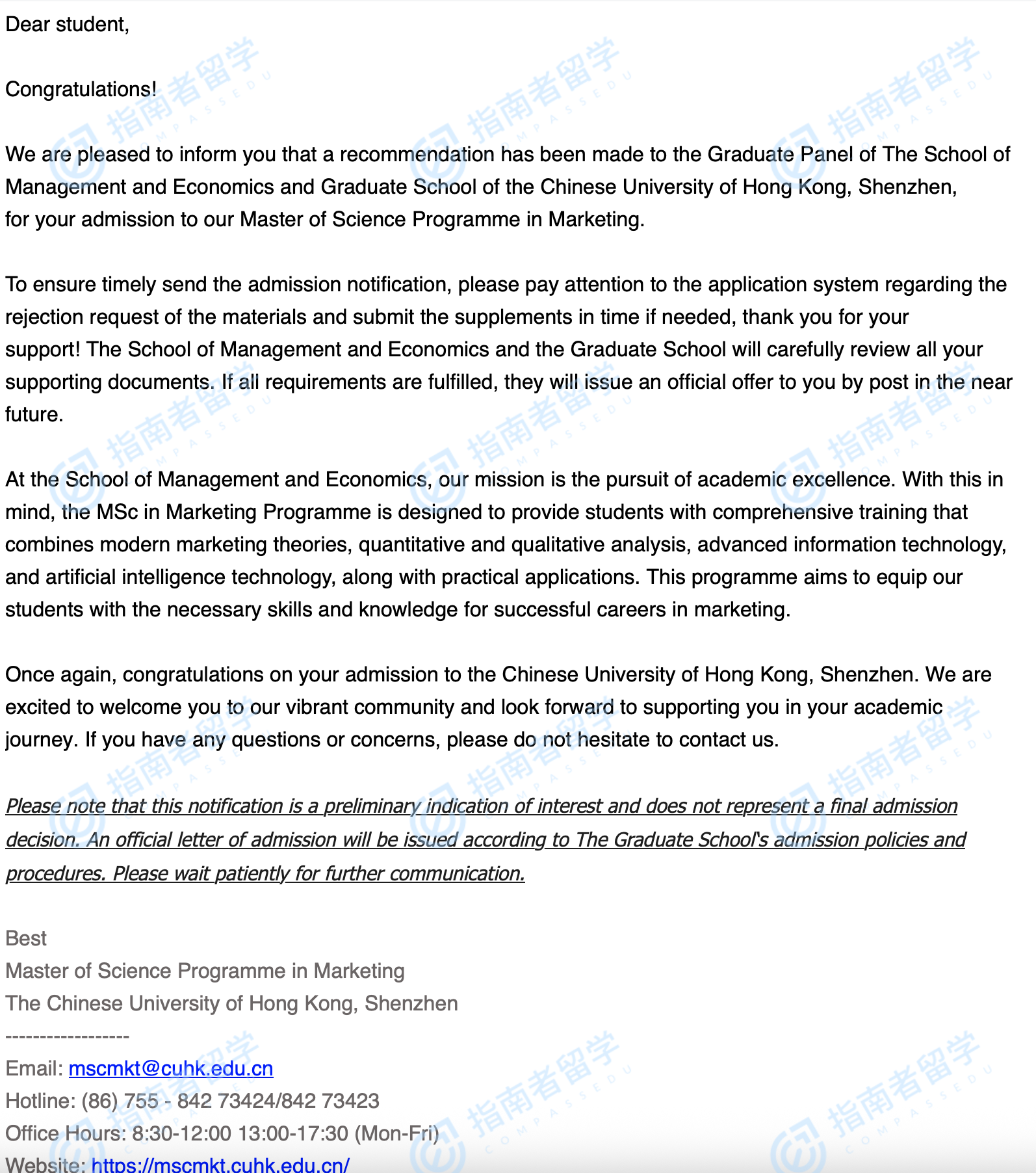 香港中文大學(xué)市場(chǎng)學(xué)理學(xué)碩士(CUHK-Shenzhen)研究生offer一枚