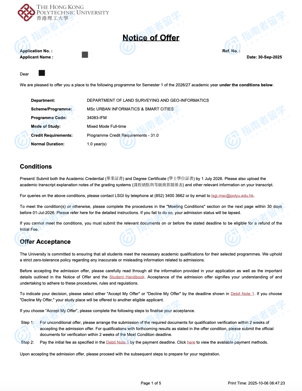 香港理工大學(xué)城市信息學(xué)及智慧城市理學(xué)碩士研究生offer一枚