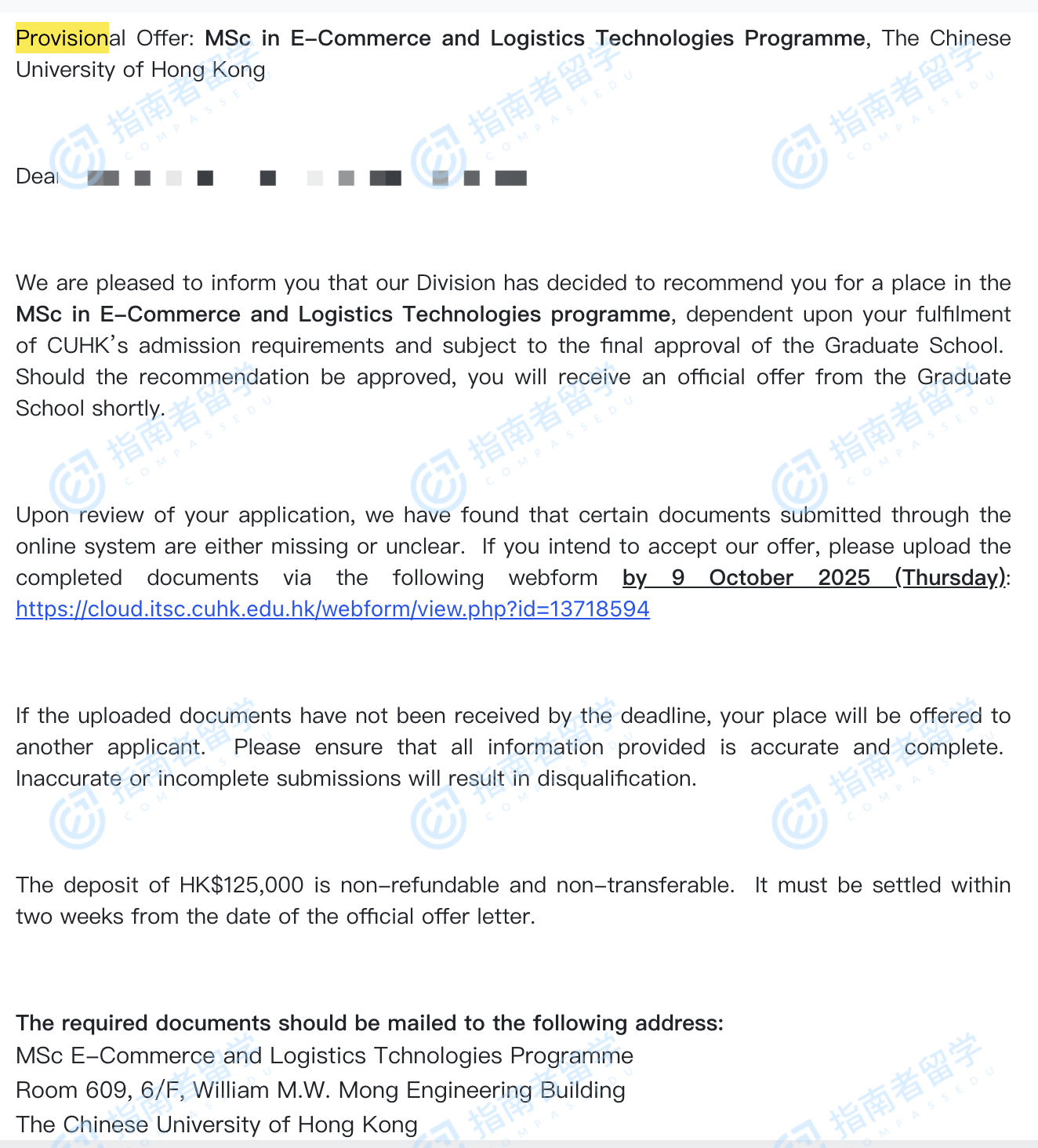 香港中文大學(xué)電子商務(wù)與物流技術(shù)理學(xué)碩士研究生offer一枚